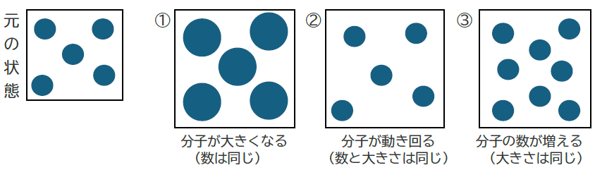 分子は温度変化では増減したり大きさが変わったりはしません。