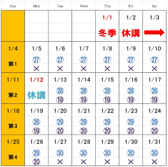 ■12/31(水)~1/3(土)は冬季休講とさせていただきます。