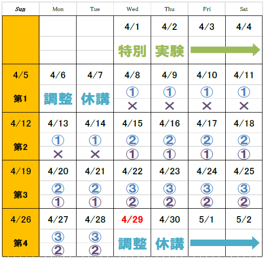 ●4/29(祝水)~5/6(祝水)までGWの休講期間となります。